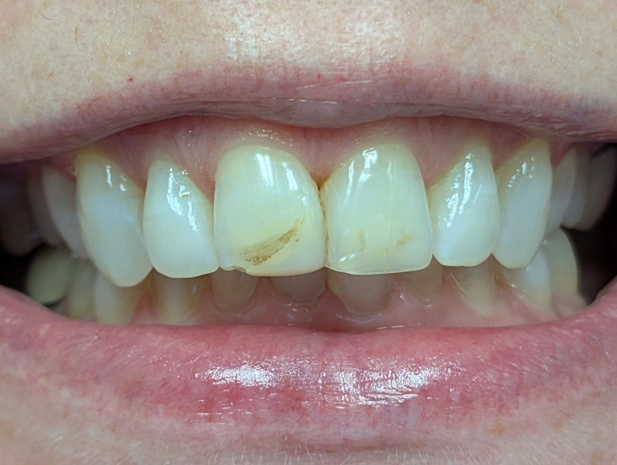 This patient was starting to notice crowding at her upper and lower front teeth that were noticeable in photos and causing food collection between her teeth.